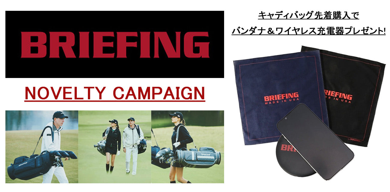 【BRIEFING GOLF ノベルティフェア開催中!!】対象のキャディバッグを購入でオリジナルバンダナ&ワイヤレス充電器をプレゼント