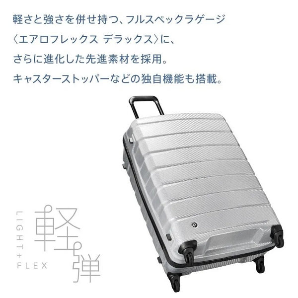 軽さと強さを併せ持つ、フルスペックラゲージ。ポリプロピレン由来の繊維強化複合素材を使用した軽量モデル。強い力が加わっても、元の形状に戻ろうとする高い復元性を備え、軽さと丈夫さを両立した万能スーツケースです。