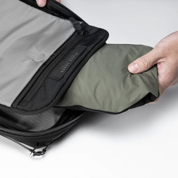 サンフランシスコを拠点に、2014年にスタートしたバックパックブランドのBLACK EMBER(ブラックエンバー)。NIKEとTHE NORTH FACEにてプロダクトマネジメントを経験したデザイナーにより、アーバンライフスタイルへ向けた、デザイン性とハイスペックな機能性を盛り込んだバックパックを展開しています。モジュールシステムを採用した本体もブランドの特徴の一つで、使い手のニーズに合わせたカスタムも可能です。EmberTex PFASという有機フッ素化合物が全て除去された、NYLON6で構成された新素材で作られた人気モデルのアイテムす。マット加工が施されており、耐摩耗性、防汚性、防塵性に優れている、99%防水の高密度ナイロンのスマートなリュックです。
