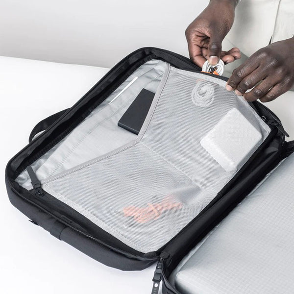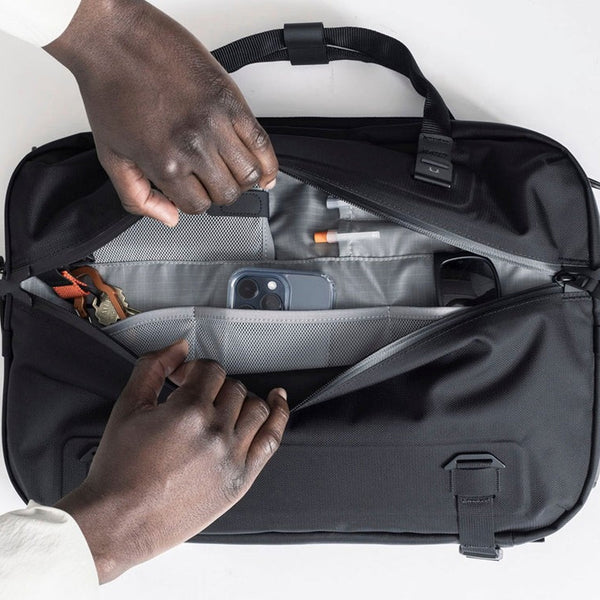 サンフランシスコを拠点に、2014年にスタートしたバックパックブランドのBLACK EMBER(ブラックエンバー)。NIKEとTHE NORTH FACEにてプロダクトマネジメントを経験したデザイナーにより、アーバンライフスタイルへ向けた、デザイン性とハイスペックな機能性を盛り込んだバックパックを展開しています。モジュールシステムを採用した本体もブランドの特徴の一つで、使い手のニーズに合わせたカスタムも可能です。EmberTex PFASという有機フッ素化合物が全て除去された、NYLON6で構成された新素材で作られた人気モデルのアイテムす。マット加工が施されており、耐摩耗性、防汚性、防塵性に優れている、99%防水の高密度ナイロンのブリーフバッグです。