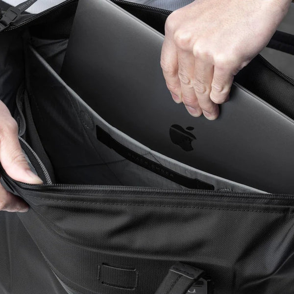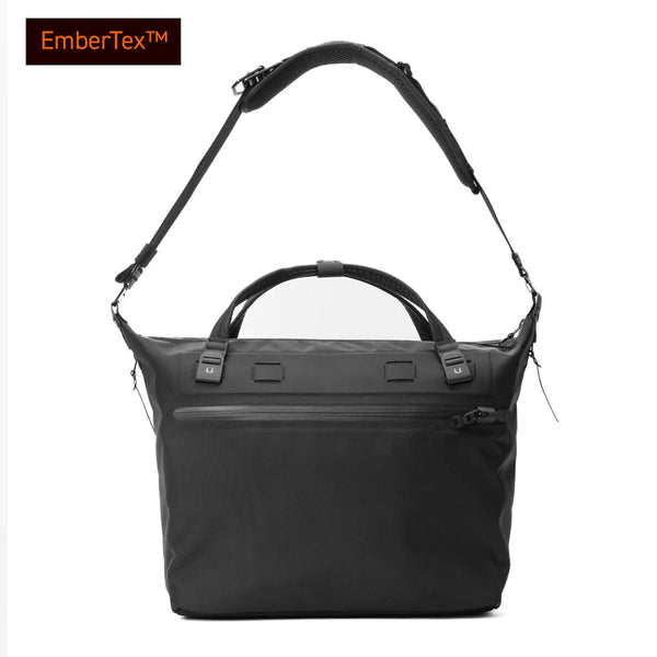 サンフランシスコを拠点に、2014年にスタートしたバックパックブランドのBLACK EMBER(ブラックエンバー)。NIKEとTHE NORTH FACEにてプロダクトマネジメントを経験したデザイナーにより、アーバンライフスタイルへ向けた、デザイン性とハイスペックな機能性を盛り込んだバックパックを展開しています。モジュールシステムを採用した本体もブランドの特徴の一つで、使い手のニーズに合わせたカスタムも可能です。EmberTex PFASという有機フッ素化合物が全て除去された、NYLON6で構成された新素材で作られた人気モデルのアイテムす。マット加工が施されており、耐摩耗性、防汚性、防塵性に優れている、99%防水の高密度ナイロンのトートバッグとショルダーバッグになる2WAYバッグです。