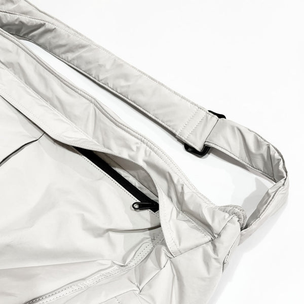 SML(エスエムエル)のブランドコンセプトは、「多様化するLIFE STYLEに合わせた、実用的な機能美の追求」。バッグも、変化するライフスタイルに合わせて常にアップデートすべきと考え、時代の移り変わりに柔軟に対応したバッグを提供しています。スマートで機能美に優れたプロダクトデザインが特徴です。ヘルメットバッグをイメージしたフェイスがデザインポイントのショルダーバッグで、軽量素材にボンディング加工を施し見た目以上の軽さが特長です。 内側にペットボトルホルダーを付け、サイドのポケットにも 500ml ペットボトルも収納可能です。天口、前ポケットのファスナーをダブルファスナー仕様 にしていて右掛け、左掛け問わずご使用頂けます。